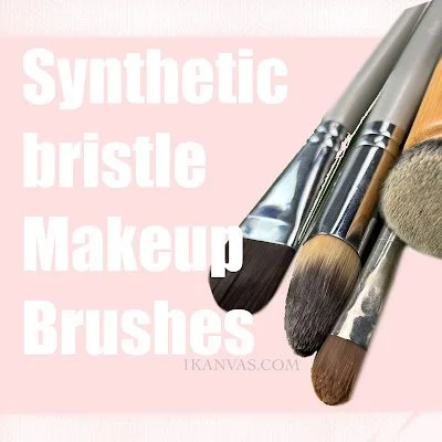 These brushes are man made using nylon, taklon or polyester fibres. Similar to acrylic paint brushes. These fibres are more resilient and less expensive to make. The bristles are smooth and flat, which allow it be the best choice to apply liquid and cream products. The product is typically made my machine for quicker production.
